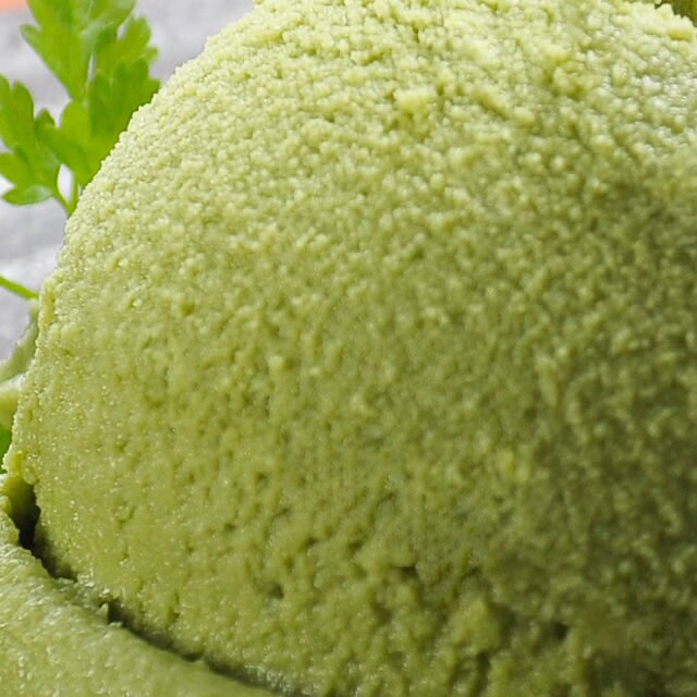 濃厚なお抹茶の香り・風味をお楽しみいただけます。やさしい甘味とさっくりとした舌触り、口に含むとアッという間に溶けていく、まるでシャーベットのようです。通常の抹茶アイスのようなまったり感がありません。